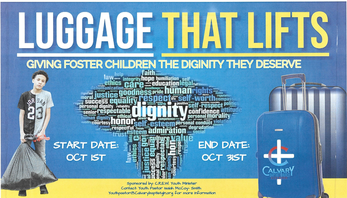 Shoutout to our Recruitment Coordinator, Tykisha, for building a new partnership with Calvary Baptist Church in Glenwood! Calvary Baptist is doing a luggage drive during the month of October, and they will be providing luggage for all of the youth in our program who want it! Stay tuned for details about the luggage distribution.